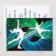 A ação esportiva e a energia dos atletas de patinação artística são capturadas em silhuetas de figuras de ação demonstrando acrobacias e truques no gelo. Pinturas digitais e ilustrações desses atletas incluem fundos de cores vivas e brilhantes e respingos e explosões de luz para destacar a ação.
