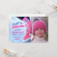 Faça o aniversário de inverno do seu filho ser inesquecível com este convite exclusivo de patinação no gelo. O design do convite é destacado por ilustração digital de um par de patins e calças modernas e legais com árvores nevadas e montanhas ao fundo.