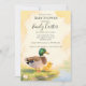 Celebre o seu pequeno com este charmoso convite de revelação de gravidez com um pato silvestre e seu filhote, em um fundo amarelo suave em aquarela. Este doce design inspirado na natureza cria uma sensação de calor e acolhimento, perfeito para uma revelação de gravidez neutra em relação ao sexo do bebê ou surpresa.