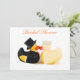Noiva e patos de borracha de noivo se beijando. Chapéu de cima e rabo com pérolas. Convite de casamento ou cartão que pode ser personalizado com seu próprio texto, nomes, data e imagens.
