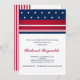 Mostre seu orgulho americano no tempo da eleição, para um evento fundraising político ou um feriado federal tal como o 4 de julho, o Memorial Day, dia de veteranos por convidados de convite com este convite vermelho, branco e azul.