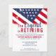 Este design apresenta uma bandeira americana e um esquema de cores vermelho, branco e azul para um policial aposentado. O texto "A lenda está se aposentando" se senta acima de todos os detalhes partidários para os detalhes do polícia aposentado, xerife, capitão ou chefe do partido aposentado.