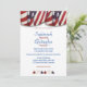 Este bunting vermelho, branco e azul patriótico ao longo da parte superior e estrelas correspondentes ao longo da parte inferior, colocou a design deste convite de casamento. O fundo de ambos os lados é um design vermelho, branco e azul macio. O convite atrás corresponde ao design. Personalize a design com seus detalhes de casamento nos campos de modelo.