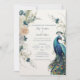 Um convite de casamento temático de pavão, customizável e projetado com bom gosto, combinando a elegância e a natureza régia do Pavão Azul com a alegria de uma celebração de casamento.