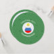 Para a sua festa de Natal, este convite redondo contém um anjo que veste a bandeira russa. Ela voa dentro de um círculo branco e fractal de quadrados rabugentos, cercado por um fractal de quadrados verdes rabugentos. Adicione um nome e ano à frente para personalizar. Ou, mude o texto para o que quiser. As informações da festa estão no verso para os detalhes do seu evento.