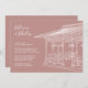 Fácil de personalizar modelo de casamento. Casamento em destino Cidade de Nova York, convite de cerimônia de casamento no gazebo do Pavilhão das Senhoras do Central Park. Monocromático com ilustração de silhueta branca deste popular gazebo de casamento localizado perto do lago na área superior oeste do Central Park no coração da cidade de Nova York.