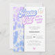 Saudações do Peace Out 30 40 ... Convite para aniversário de 40 anos (ou sinta-se à vontade para editar os anos a que se destina). Padrão de coloração aquosa do Pastel em tons de lilás e azul com tipografia de ranhura e sinal de paz retrô. Fácil de personalizar para qualquer idade.