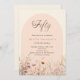 Um convite elegante para flores silvestres. Um fundo creme, cor bege e um arco colorido de pêssego. Decorado com flores silvestres de cor d'água em bege, rosa.