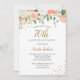 Convite Peach Dourada Watercolor, Festa de aniversário Flo