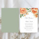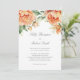 Convite Peach Floral Top Border Elegant Script Wedding