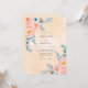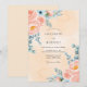 A romantic watercolor aesthetic defines this design with soft peach and blush pink tones. Lush peonies and delicate roses are nestled among dusty blue eucalyptus leaves and tiny blue blossoms. A subtle warm-toned wash creates a serene and ethereal atmosphere for a sophisticated spring event.