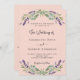 Um fundo cor de pêssego da moenda decorado com flores de lavanda e verde de eucalipto. Personalize e seus nomes e detalhes. Voltar: adicione o URL do seu site de casamento ao código QR para obter detalhes e/ou RSVP.