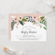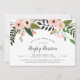 Chá de panela chic apresenta uma borda superior de produtos botânicos verdes em cascata pontilhados com pêssego e flores e botões cor-de-rosa pincelados. Personalize com os detalhes do seu chá de panela em letras negras pouco claras, com o nome da noiva em um elegante roteiro de caligrafia estilo escrito à mão.