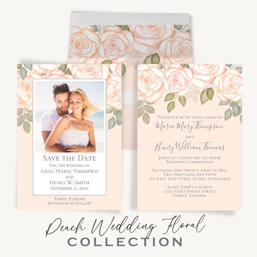 Convite Peach Minimalista Simples de Sobreposição de Fotos