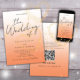 Convite Peach Orange Fuzz Script Elegante Código QR Casame