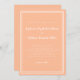 O convite para casamento elegante e moderno apresenta um simples design moderno e moderno contemporâneo, com uma dupla fronteira em branco nítido, sobre um fundo de pêssego contemporâneo. A formulação tradicional proporciona sofisticação eterno mas moderna. Personalize o design de casamento com seus detalhes em letras brancas e roteiro nítidos. A parte de trás da carta corresponde ao pêssego.