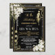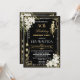 Personalize este Excelente floral de arte vintage deco Gatsby ao rodar o convite para o aniversário de tema dos anos 20 com facilidade e rapidez, basta pressionar o botão personalizar para reorganizar e formatar o estilo e a colocação do texto. Apresentando um quadro de deco de arte em forma de chic, orquídea branca de marfim e pérolas florais límpidas, espumantes e esquema de cor preto e dourado. Itens correspondentes disponíveis no repositório! (c) O feliz Cat Studio.