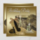Elegante preto e ouro brilhando alto salto calçado as mulheres qualquer convites de festas de aniversários numérico. Este elegante convite de festas de calçado de salto alto, preto e dourado, é facilmente personalizado para a sua festa ou evento, adicionando detalhes do evento, estilo de fonte, tamanho de fonte e cor e texto.