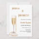 Um convite moderno, na moda e glamouroso para uma festa de aniversário de Pérolas e Prosecco (qualquer idade) Um fundo branco com vidro, flauta com bolhas de ouro e pérolas. O nome é escrito com um moderno estilo escrito à mão. Personalize e adicione os detalhes da sua festa.