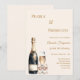 A modern, stylish and glamorous invitation for a Pearls and Prosecco birthday party (any age) An ivory background with a bottle, glass, flute with a bow with pearls. The name is written with a modern hand lettered style script. Personalize and add your party details.