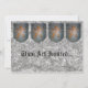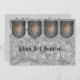 A pintura de um ouro, leão medieval, desenfreado, heráldico do Peck de Linda Baysinger, no protetor do metal do falso, com a pedra cinzenta do falso. Apenas adicione seu próprio texto em ambos os lados, para personalizar.
