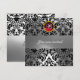 Elegante, sofisticado e único damasco Art Nouveau com uma pedra preciosa brilhante em 3D. Este design artístico e legal é facilmente personalizável com seu texto e iniciais como cerimônia de casamento, cartão de anúncio nupcial, cartões de mesa, cartão de save-the-date, cartão de agradecimento, chás de bebê, chás de panela, festa de 16 anos, festas de aniversário de quinceanera, Bat Mitzvah, chás de noivado romântico, Natal, feriado, escritório, reuniões de família, celebrações de Ano Novo, aniversários, encontros, formaturas escolares, concerto, recital ou praticamente qualquer evento que você desejar! Design digital por BALDESIGN3D (c).