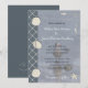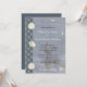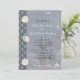 Tendo seu casamento na praia, se assim estes convites puderam ser os seus para você. Toques náuticos dos azuis, dos seashells, da rede da corda, da estrela do mar, e de uma foto iluminada de uma gaivota na borda das águas da praia como o fundo principal. A parte traseira tem a mesma cor azul contínua que no lado de mão esquerda deste convite com uma corda e uma estrela do mar e outra vez das palavras "pelo litoral" que pode tudo ser removido. A parte anterior apenas precisa sua própria informação do casamento de terminá-la.