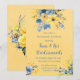 Espero que gostem deste fundo amarelo de textura aquosa com flores de pénia azul e amarela numa coroa circular. Convites e suprimentos de festa de casamento correspondentes estão disponíveis neste conjunto de coleções.