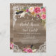 Este belo convite apresenta um fundo escuro de madeira rústica, e lindas flores de aquarela com rendas e luzes de cordas. Perfeito para um convite de casamento, chá de panela, chá de fraldas, celebração de aniversário ou celebração de churrasco.