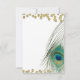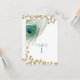Convite Penas de Pavão & Número de Mesa Boho Glam Dourado