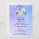 Um convite para chá de noiva com tema nativo americano / boêmio. Um design em aquarela com quatro penas delicadas e macias enfeitadas juntas penduradas na borda superior. O fundo é uma textura suave de aquarela roxa azulada. Um motivo tribal com tema estilo nativo americano. Personalize com os detalhes da sua festa.