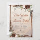 Este convite para o casamento é perfeito para aqueles que procuram um tema de casamento floral rústico. O design apresenta uma armação de madeira delimitada por um sortido de flores brancas, nogueiras e de peluche, folhas de madeira e um conjunto de penas rústicas sobre uma canvas pintada de bege, castanha, esticada e umber. Os elementos gráficos podem ser movidos e o texto totalmente editável para esse bit adicional de personalização.