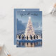 Penguins gather around a glowing white Christmas tree on a floating ice platform in a serene, icy landscape.