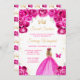 Este elegante e glamouroso e doce convite de 16 anos apresenta uma bela princesa com cabelo louro num vestido de bola rosa quente. O texto combina o script manuscrito e as fontes sans serif modernas para um aspecto elegante e sofisticado. Os arranjos florais, borboletas e confete de ouro criam a mistura perfeita de rústicos e quicos. Gráficos por www.etsy.com/uk/shop/SunflowerDayLove