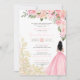 Convite Peões Rosa e Dourados Quinceanera Floral Elegante