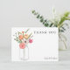 Diga Obrigado com esta bela nota que apresenta um buquê de flores cor-de-rosa, pêssego e esfarelo em um vidro de maçã. Personalize o texto no final do seu evento: chá de panela, casamento, chá de fraldas ou simplesmente personalize com seu nome para um toque pessoal.