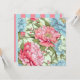 Ilustração romântica de peônias taiwanesas em rosa pastel, azul e verde menta