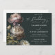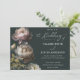 Convites de casamento Moody Watercolor Peonies Góticos. Simples e limpo. A cor de fundo pode ser alterada para ajustado do tema do casamento. Serif e caligrafia elegantes fontes estiladas. código qr e opção de site de casamento