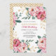 O convite para o aniversário floral Elegante e na moda apresenta uma impressionante cor d'água vermelha e flor rosa de pedras com folha de ouro verde-verde. Você pode personalizar facilmente os detalhes da festa, incluindo a idade, para torná-la ainda mais personalizada. Compartilhe a alegria com os seus amigos e família e faça deste aniversário milestone para se lembrar!
