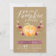 Apaixone-se por esses convites de aniversário de crianças fofas. O design apresenta uma abóbora em aquarela laranja adornada com flores burgundy, rosa e laranja e folhagens verdes em um fundo kraft rústico. "Nossa pequena abóbora está fazendo" aparece no topo em letras de caligrafia chic, com a idade do seu filho inscrita na abóbora. A amostra mostrada é para o primeiro aniversário. Personalize com os detalhes da sua festa de aniversário abaixo em letras brancas. O verso dos cartões é burgundy marsala sólido.