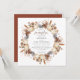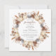 Um charmoso convite de chá de fraldas adorado com um tema rústico e autóctone. No centro da design, há uma bela coroa ilustrada feita de tons quentes e ricos de terracota e creme, com abóboras brancas.