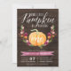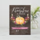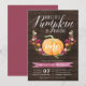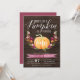 Apaixonem-se por estes convites de festas elegantes e rústicos. Design apresenta uma abóbora cor de água laranja, adornada com flores borrifadas, cor-de-rosa e laranja e folhagem verde num fundo de pranchas de madeira escura. "Nossa abóbora está girando" aparece por cima em letras de escala, com a idade do seu filho inscrita na abóbora. Amostra mostrada para o primeiro aniversário. Personalize com seus detalhes de festa de aniversário em letras brancas. Cartões invertidos a Burgundy Marsala.