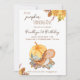 Pequeno dinossauro de abóbora modelo de convite de aniversário de queda instantâneo. Sexo neutro adequado para o outono de rapazes e raparigas