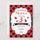 Um convite clássico de aniversário de bolinhas vermelha e preta para a sua "inseto"!!