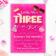 Celebre o terceiro aniversário da sua menina com o nosso adorável convite 'Pequena Senhorita Três Anos'! Este modelo personalizável apresenta um design divertido e feminino, perfeito para uma celebração de aniversário atrevida e doce.