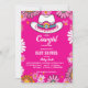 Pequena vaquinha cor-de-rosa retro boho daisies decorada vaqueira chá de fraldas convite instantâneo, cor rosa brilhante pincelada com margaridas ranhosas, fonte retrô