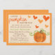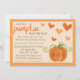 Estes bonitos convites de abóbora são perfeitos para quem celebra um chá de fraldas neste outono. A design apresenta uma abóbora laranja fofa com corações amorosos e palavras de modelo fáceis de personalizar. Itens correspondentes podem ser encontrados na coleção.