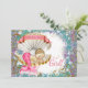 Chamadas de chá de bebês de sereia com adorável princesa loira de sereia de bebês em uma bonito concha de chamas em um lindo azul roxo, rosa e lacrimejo sob fundo do mar. Você pode personalizar facilmente esses belos convites para o chuveiro de bebês de sereia para seu evento simplesmente adicionando seus detalhes de evento no estilo de fonte e na redação de sua escolha. Você também pode adicionar uma cor de fundo e alterar o texto no banner. Este é um design impresso sem brilho real, joias, etc.
