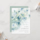 Salve o Convite de Data com flores brancas pequenas. As flores abstrato desenhadas à mão num fundo verde azul. Pintura floral de aquarela de Ornamentado mole. Abstrato natural com ramos florais ciganos. Vintage lindos galhos florais, flores elegantes, primavera ou design floral de verão, buquê romântico. Um enredo botânico. Delicar botânica para flores Salvar o Convite de Data. Coleção de Flores Brancas Pequenas.