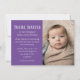 Anuncie e celebre a primeira grande portaria do seu filho com este Pequeno White Spots no Convite para Bênção de Bebê de Foto Roxo. O lado esquerdo do convite exibe elegantemente os detalhes em texto branco claro contra um fundo roxo em negrito, complementado perfeitamente por uma foto do seu bebê. A parte traseira da placa apresenta um padrão polka-ponto roxo e branco, que adiciona um toque de capricho ao design. Este na moda e este convite personalizável é ideal para cartões físicos e downloads digitais, definindo o tom para uma celebração significativa. Convide seus entes queridos a se juntarem a uma celebração de fé e amor com este belo convite feito, misturando estilo e graça.
